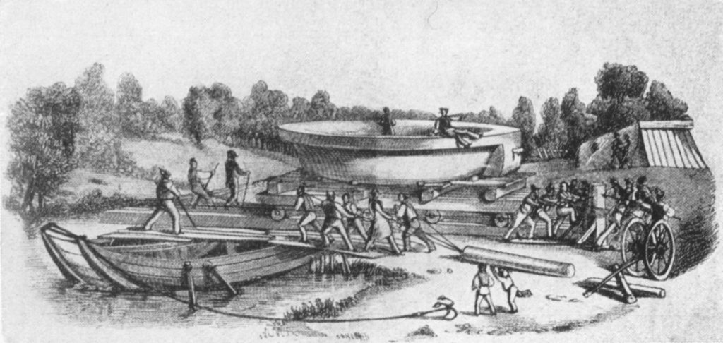 Jetzt kommt die Spree ins Spiel. Der Transport des Rohlings, mit einem Gewicht von mehr als 75 Tonnen, musste auf dem „Seeweg“ erfolgen. Da der Oder – Spree – Kanal erst Ende des 19. Jahrhunderts fertig wurde, musste dieser über die Spree vorbei am Spreebord, erfolgen. Leider sind zum Transport nur wenige Informationen bekannt. Eine ist, dass zum Wassertransport eigens aus Böhmen herbeigeführte Kähne aus Fichtenholz dienten. Das heimische Bootsbauholz aus Kiefern hatte ein zu großes Eigengewicht, um die große Last auf der „flachen Spree“ zu transportieren.